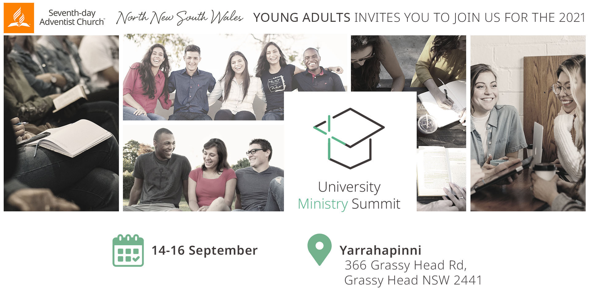 A weekend of training and inspiration for Adventist young people attending a University within NNSW or involved/interested in on-campus ministry. Program and further details will be sent out to registrants via email.